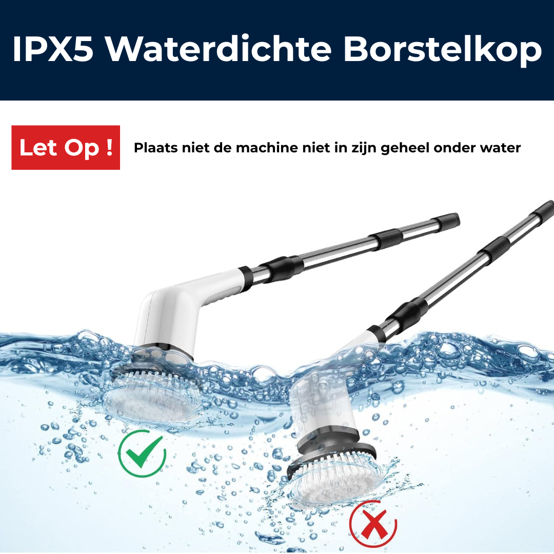 Alleen de borstelkop is spatwaterdicht en kan veilig gebruikt worden met water en schoonmaakmiddelen. Dompel het apparaat zelf niet volledig onder water voor de veiligheid!