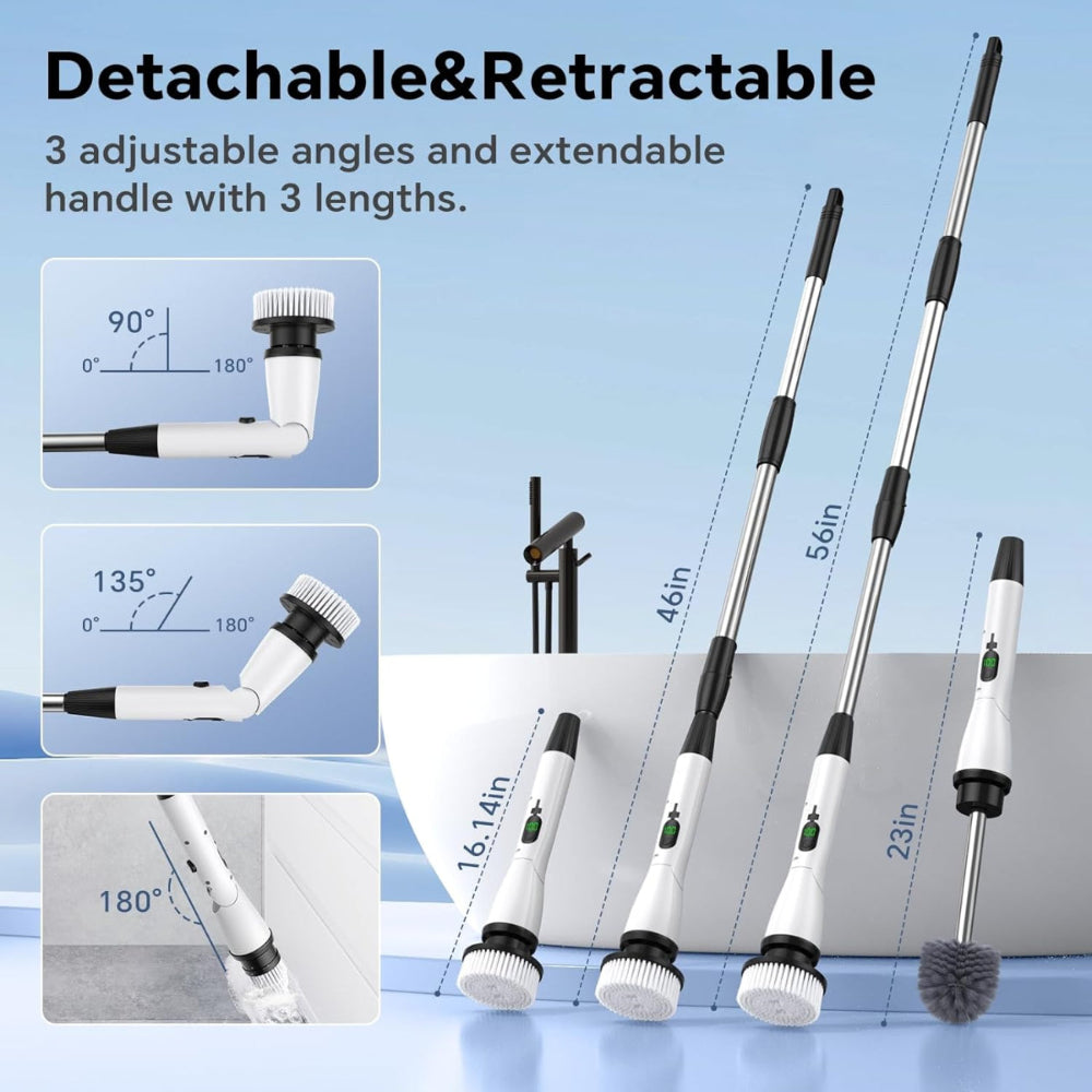 Met 4 verstelbare lengtes en 3 kantelbare kophoeken past deze scrubber zich moeiteloos aan elke klus aan. Geschikt voor badkuipen, tegels, vloeren, wasbakken, muren, auto-exterieurs en lastig bereikbare hoeken – ideaal voor zowel dagelijks onderhoud als een grondigereiniging!