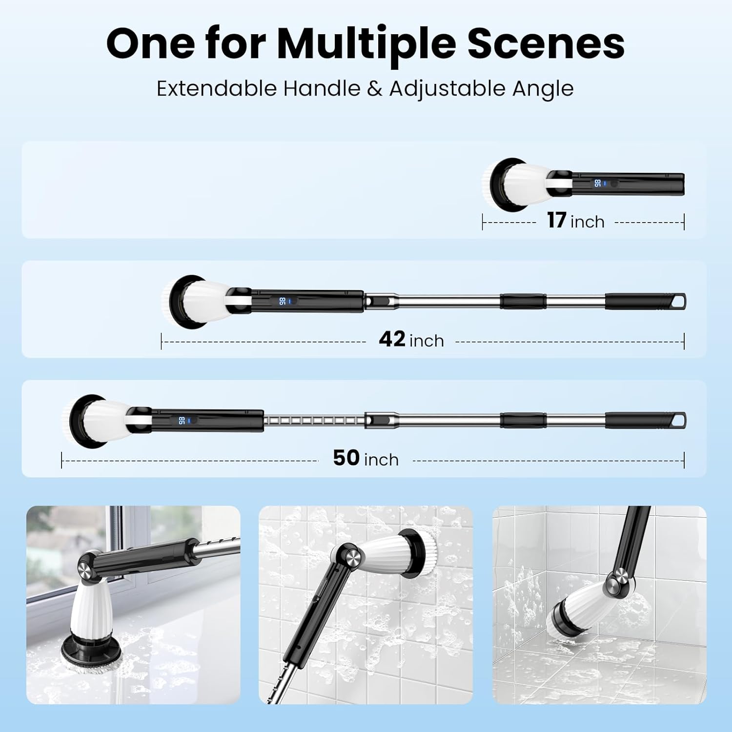 Met 4 verstelbare lengtes en 3 kantelbare kophoeken past deze scrubber zich moeiteloos aan elke klus aan. Geschikt voor badkuipen, tegels, vloeren, wasbakken, muren, auto-exterieurs en lastig bereikbare hoeken – ideaal voor zowel dagelijks onderhoud als een grondigereiniging!